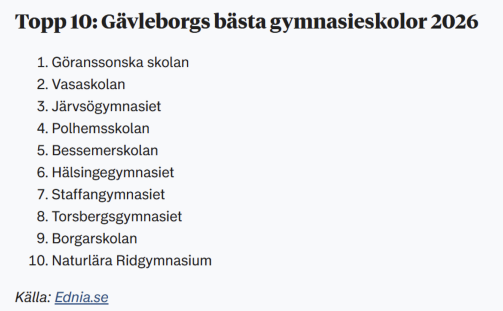 Vi på Göranssonska Skolan är väldigt glada och stolta över att få utnämningen Gävleborgs bästa gymnasieskola!